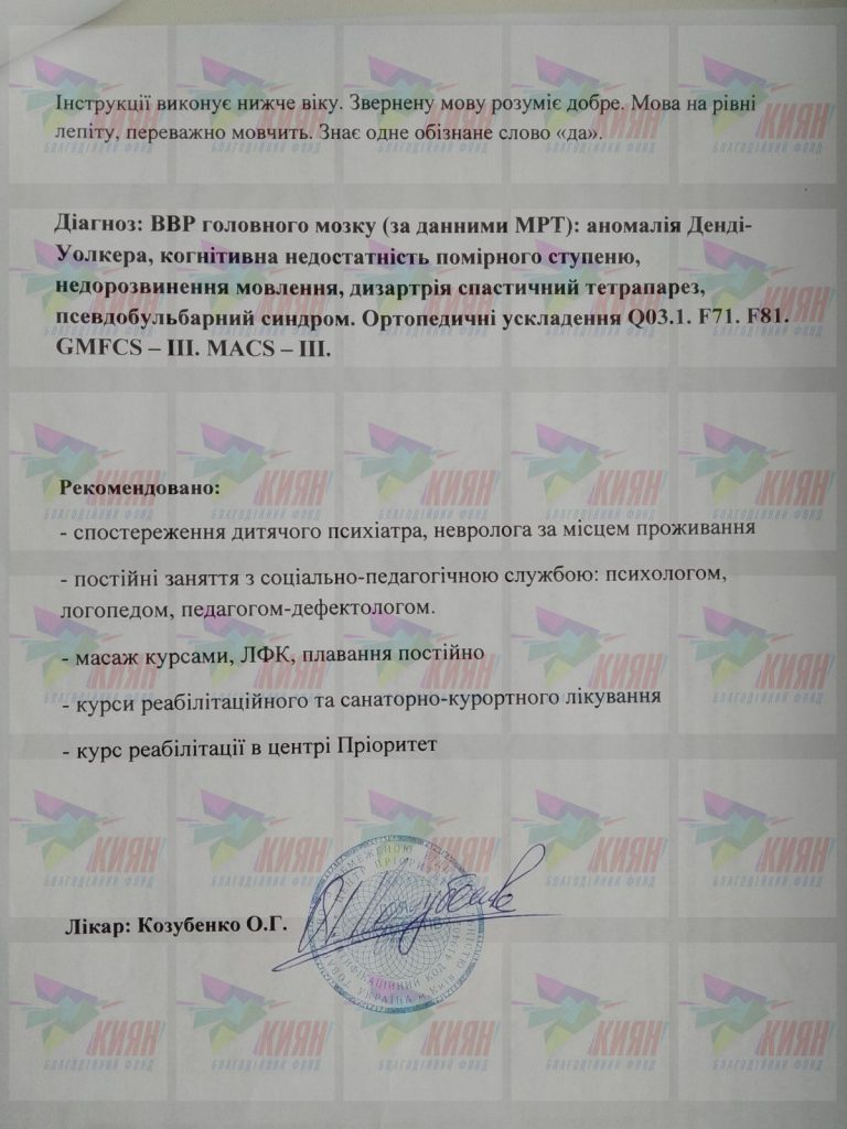 Віка розвивалася не так, як решта здорових діток. Вона довгий час не могла самостійно сидіти, тримати голівку, перевертатися, ходити і говорити. Її діагнози сковували її тіло і розум. Але завдяки невтомній праці і неймовірній кількості пройдених курсів лікування сьогодні Віка вимовляє свої перші звуки і слова, робить свої перші самостійні кроки, тримаючись за руку. І робить вона це зараз, коли їй 12 років.А після останнього курсу реабілітації у Віки нові результати: тепер вона за потреби проситься до вбиральні! Мама дуже сподівається, що зовсім скоро вони зможуть повністю відмовитися від підгузків. Це дуже хороша динаміка! А щоб досягти ще більших результатів, дівчинка має проходити лікування систематично. Тому ми відкриваємо новий етап збору коштів на УББ, щоб знову оплатити лікування для Віки. Підтримайте нас!