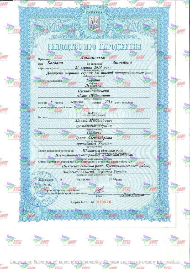 Ім’я: Лакшинська Богдана Зіновіївна , 21.08.2014 р.