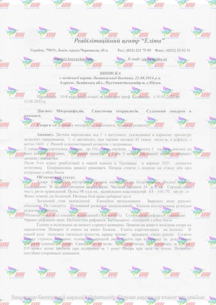 Діагноз: Мікроцефалія. Спастична тетраплегія. Судомний синдром в анамнезі.