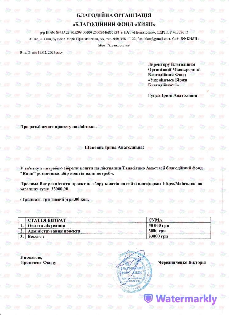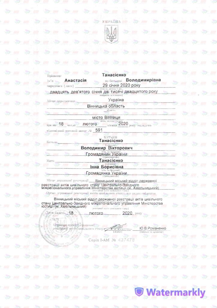 Повне ім’я: Танасієнко Анастасія Володимирівна, 29.01.2020 р.