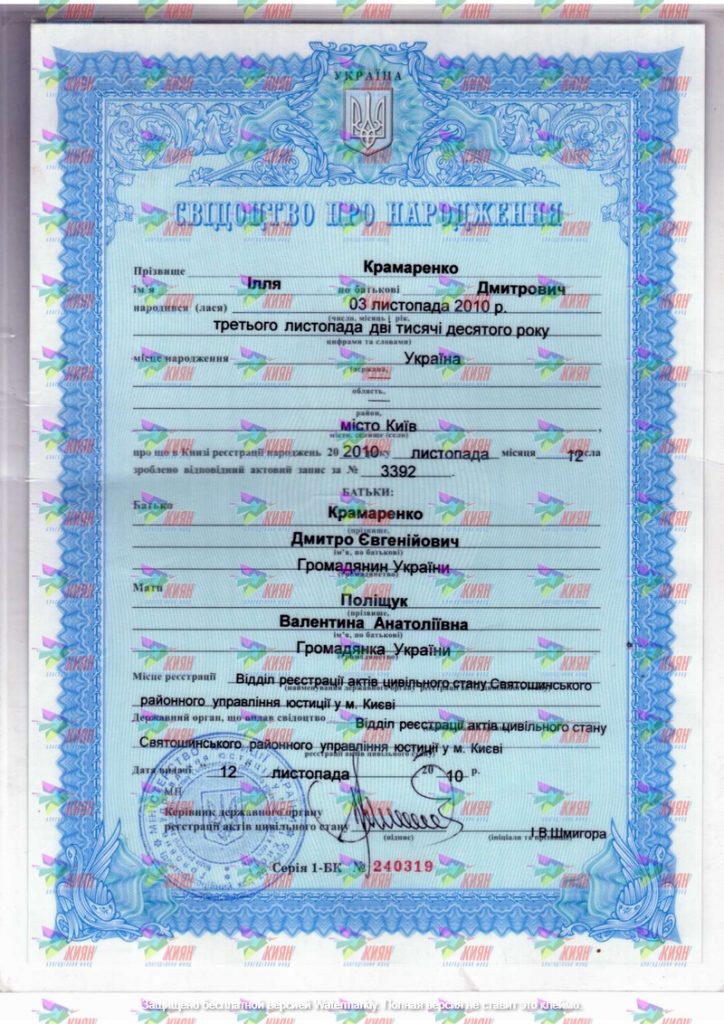 Ім’я: Крамаренко Ілля Дмитрович , 03.11.2010 р.