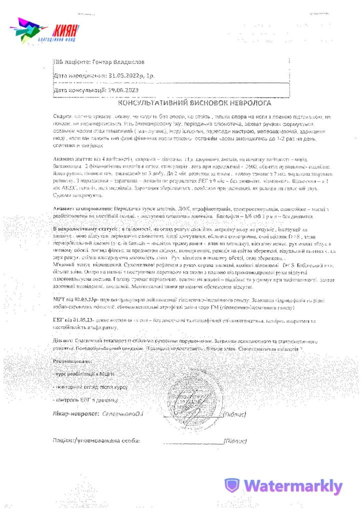Діагноз: ДЦП, спастичний тетрапарез, стійкі рухові порушення, затримка психо-мовленнєвого розвитку, епілептичний синдром