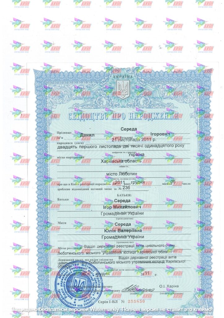 Ім’я: Середа Данил Ігорович , 21.11.2011 р.