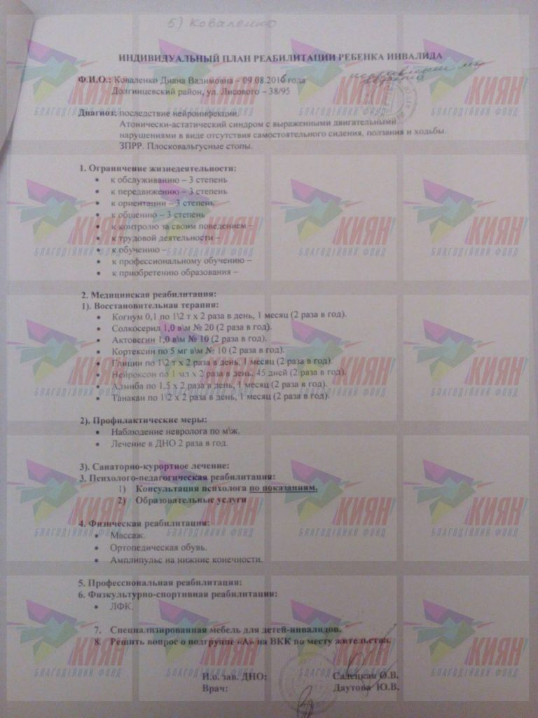 Диагноз: Наслідки нейроінфекції, атонічно-астатичний синдром із вираженою затримкою у вигляді ходи, ЗПМР