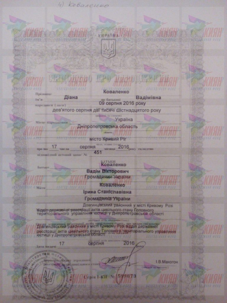ПІБ: Коваленко Діана Вадимівна, 09.08.2016 р.