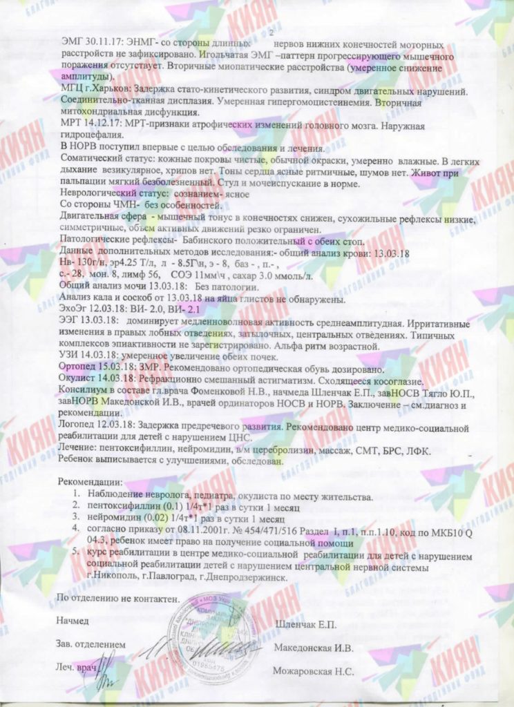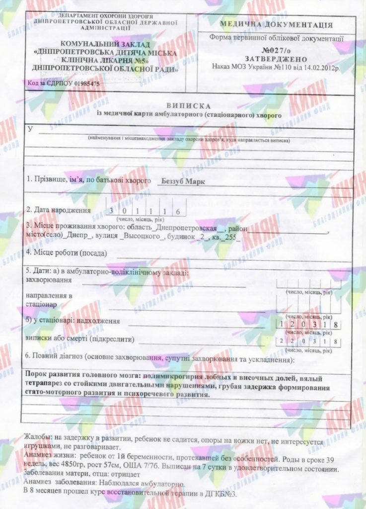 Диагноз:вада розвитку головного мозку: полімікрогірія лобових і скроневих часток, млявий тетрапарез зі стійкими руховими порушеннями, груба затримка формування стато-моторного та психо-мовного розвитку