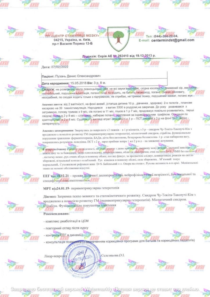 Відгуки батьків та інформацію про поередні етапи лікування можно подивитися тут