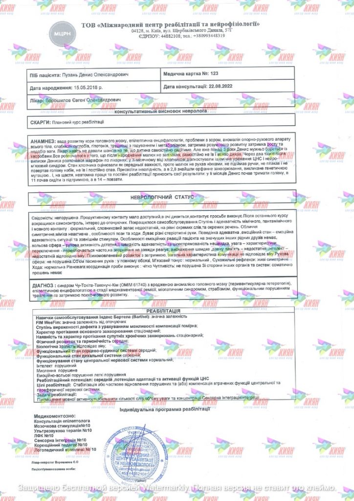 Лікування Дениса розпочали негайно. Систематичний підхід і комплексна терапія почали допомагати малюкові, адже в 9 місяців він почав тримати голівку, в 11 сидіти, а пізніше і повзати.
