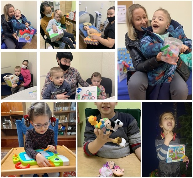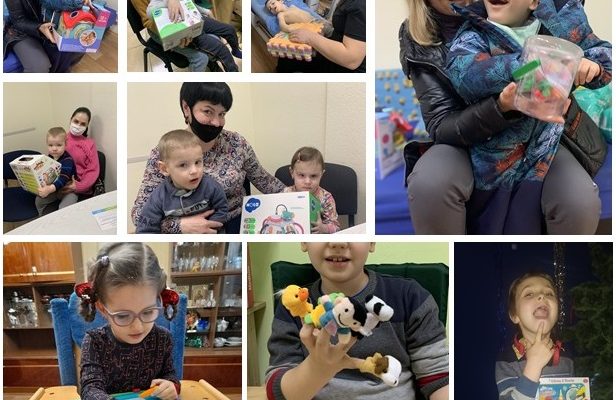 Kate Levytska с большим мешком настоящих подарков для наших малышей — подопечных БФ КИЯН, как правило, это детки с тяжелыми неврологическими заболеваниями.