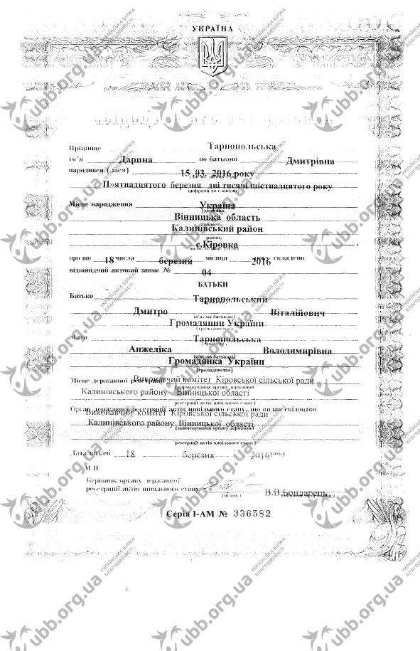 ФИО: Тарнопольська Дарина Дмитрівна, 15.03.2016 р.