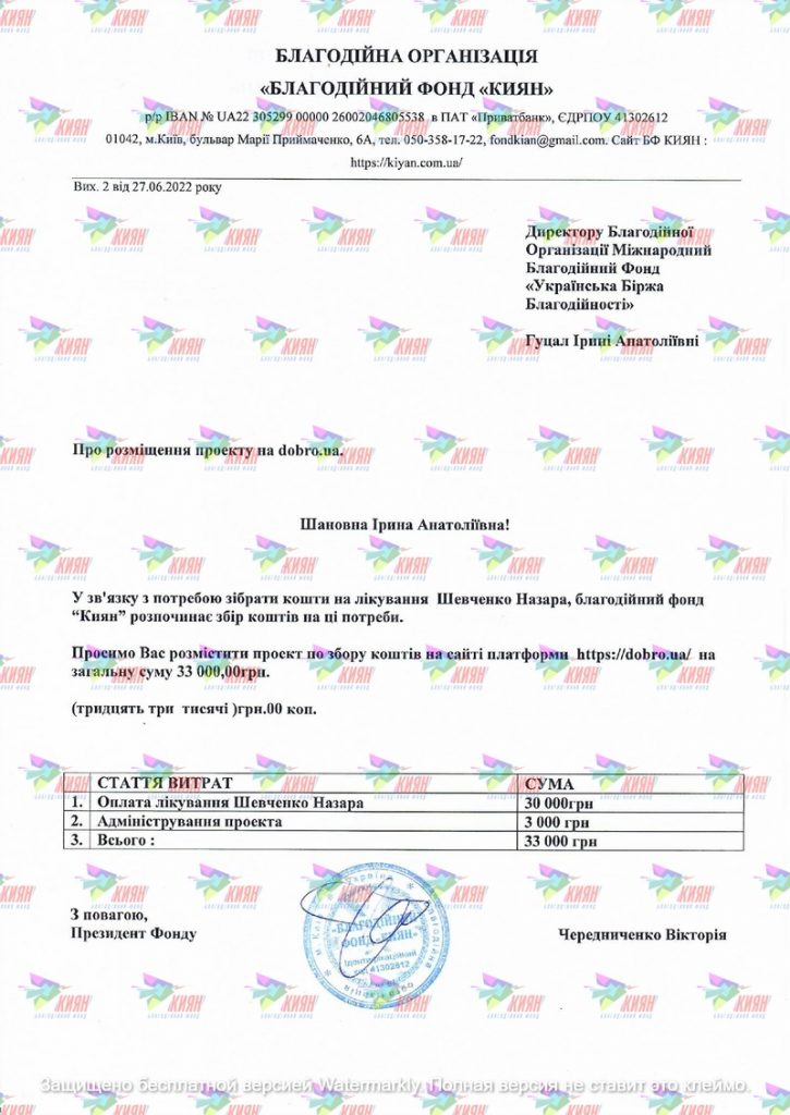 Ім’я: Шевченко Назар Сергійович, 26.06.2014 р.