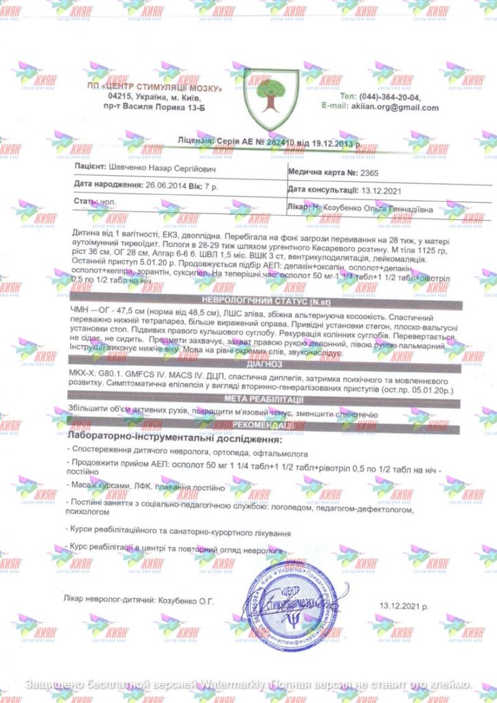 Діагноз: ДЦП, спастична диплегія, симптоматична епілепсія