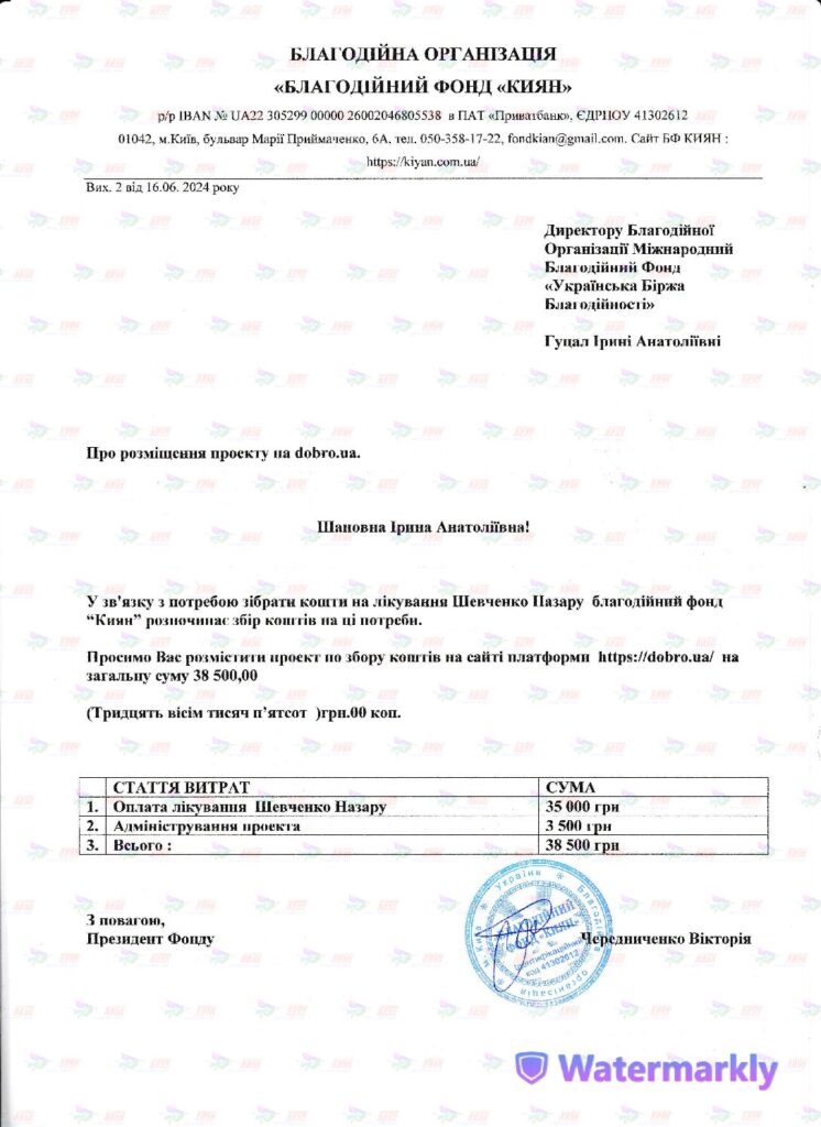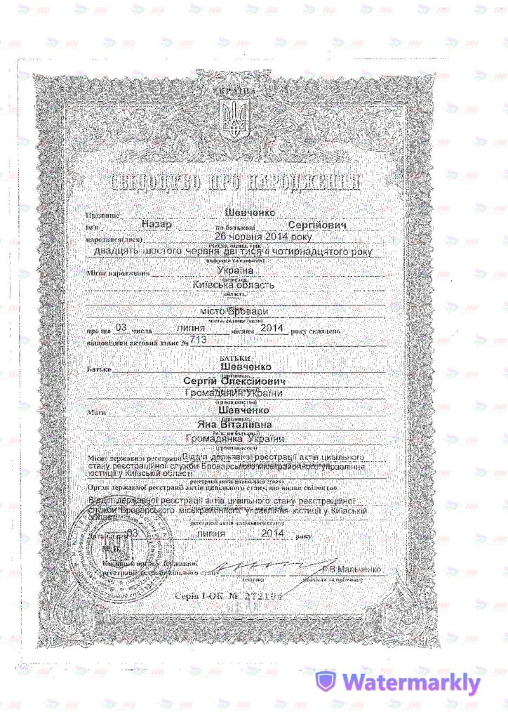 Повне ім’я: Шевченко Назар Сергійович, 26.06.2014 р.