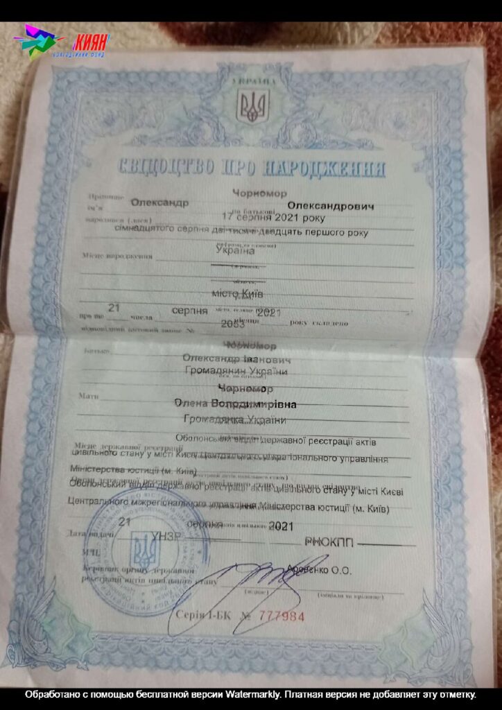 Повне ім’я: Чорномор Олександр Олександрович, 17.08.2021 р.