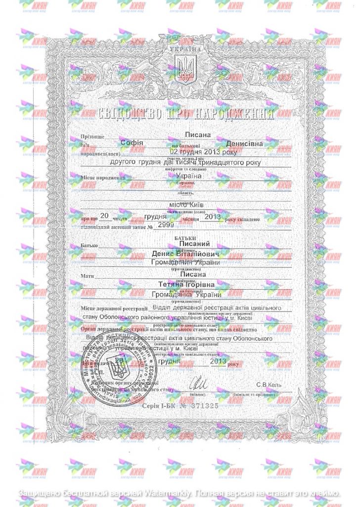 Ім’я: Писана Софія Денисівна, 02.12.2013 р.