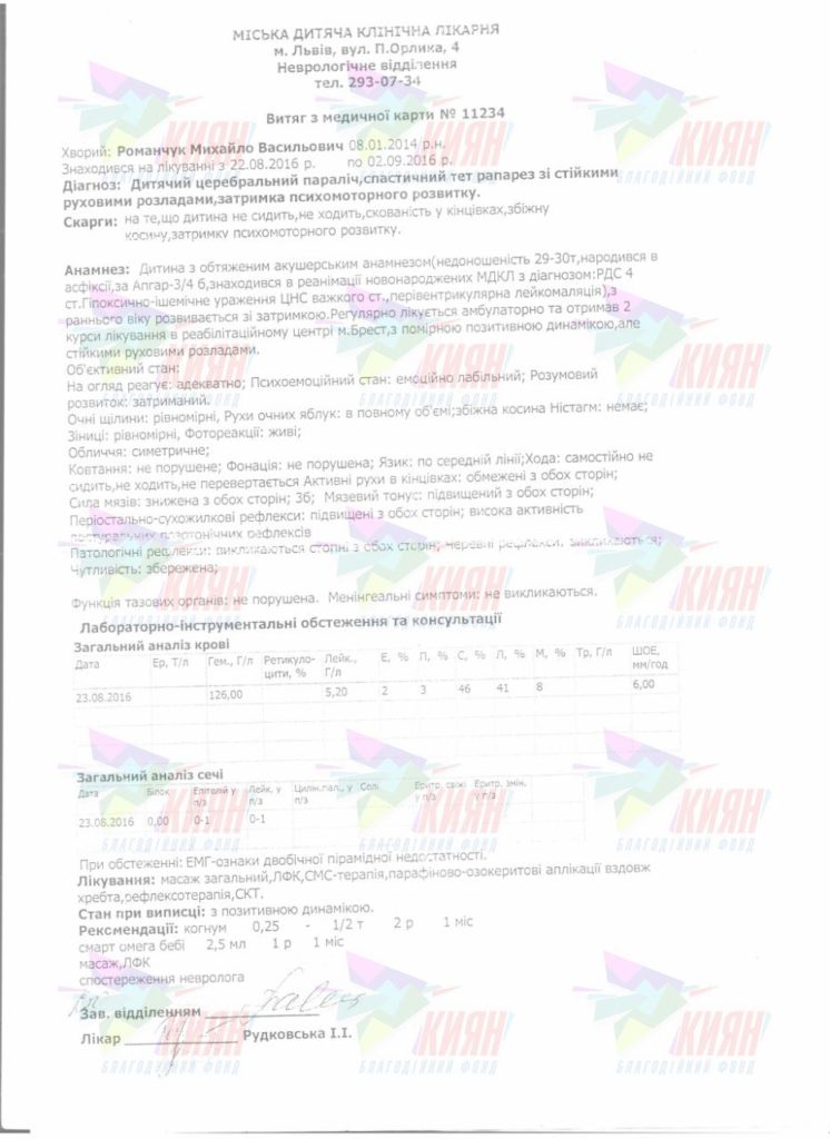 Диагноз: ДЦП, спастичний тетрапарез зі стійкими руховими розладами, затримка психомоторного розвитку