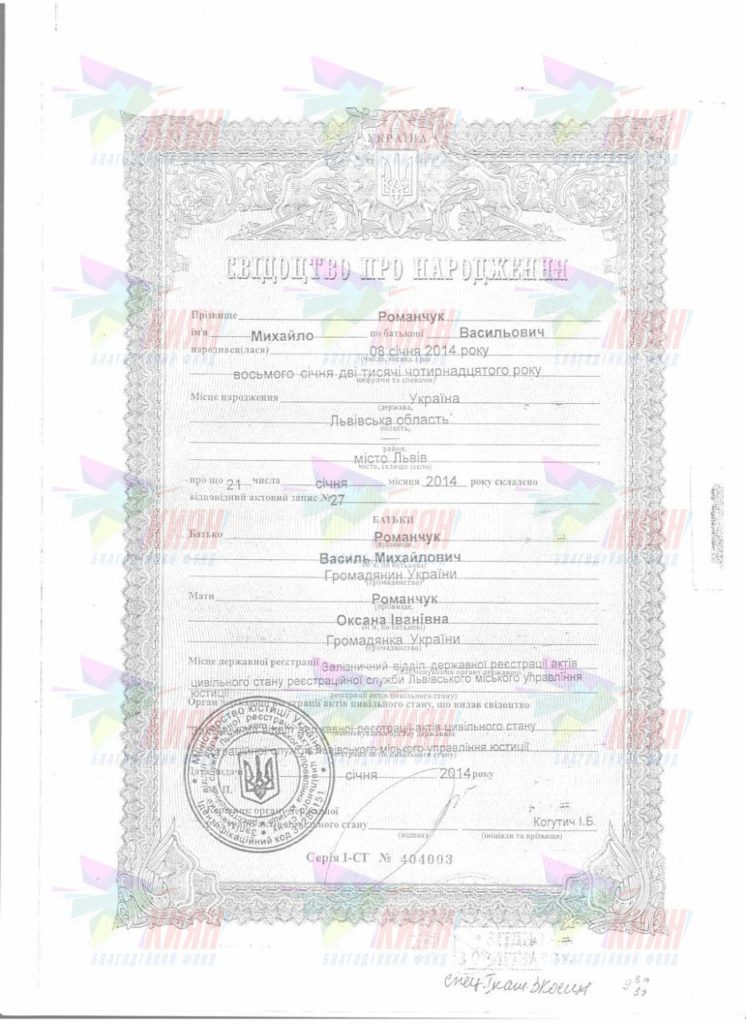 ФИО:Романчук Михайло Васильович, 08.01.2014 р.