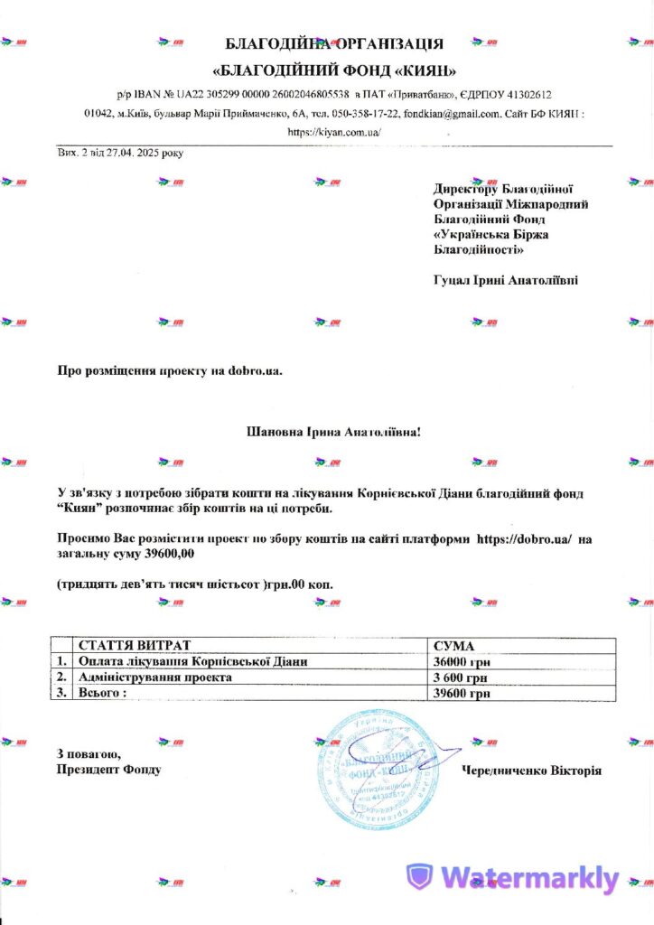 Підтримати Діана можно також на dobro.ua