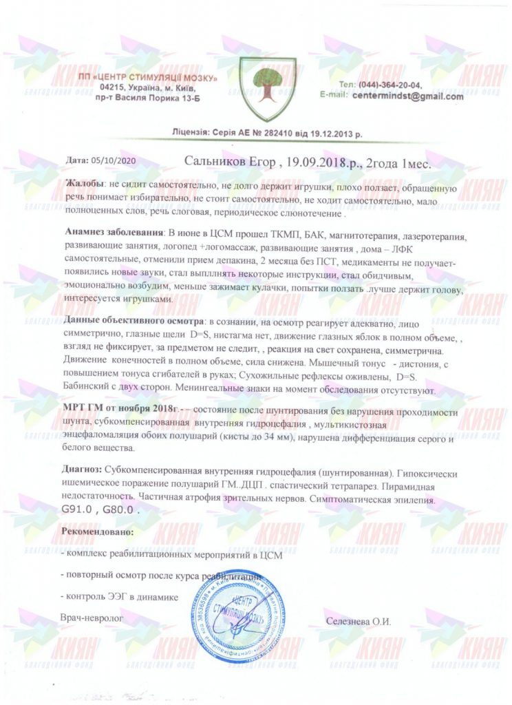 Уже вдома мама помітила, що її син розвивається не так, як інші дітки. Домисли мами підтверджують лікарі: справді, Єгор відстає у розвиткові. І щоб це виправити, потрібно проходити систематичні реабілітації. Не затягуючи, хлопчика почали лікувати, і результати не заставили себе чекати: Єгор уже добре тримає голівку, він став активнішим, без зупину сміється агукає і починає повзати. Але ручки ще дуже слабкі.