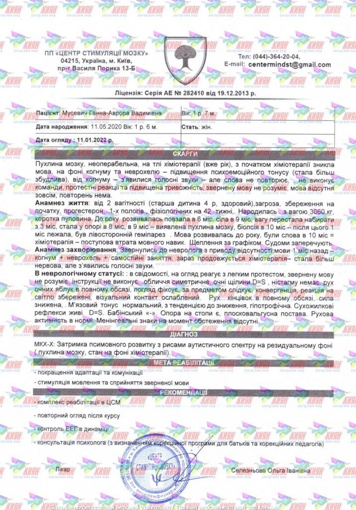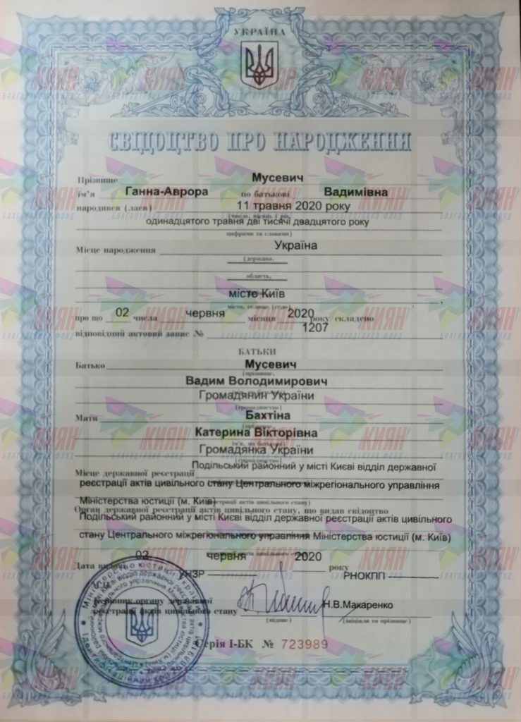Ім’я: Мусевич Ганна-Аврора Вадимівна, 11.06.2020 р.