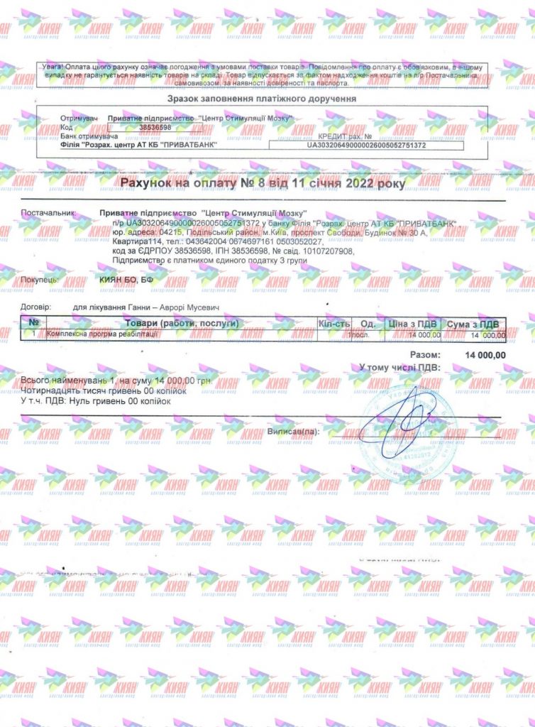 «Хімію» розпочали у квітні 2021 року. Лікування дівчинка переносить досить важко: із високою температурою і побічними ефектами від медпрепаратів. Проте, на щастя, лікування діє – згідно із результатами МРТ, пухлина дещо зменшилася в розмірах. Також в Анни-Аврори з’явилася динаміка в наборі ваги, дівчинка зміцніла, вона вже робить свої перші кроки і виявляє інтерес до їжі, проте основні прийоми їжі досі відбуваються через гастростому. Попереду крихітку чекає новий курс хіміотерапії, на який потрібно закупити медпрепарати, а коштів у родині зовсім немає.