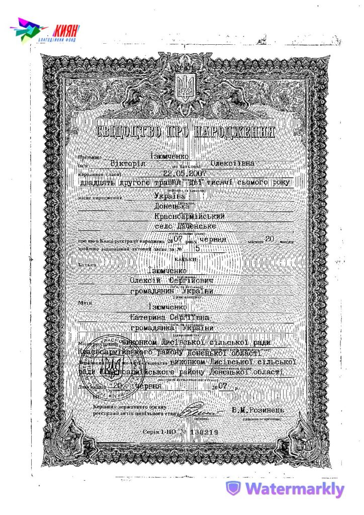 Повне ім’я: Ізюмченко Вікторія Олексіївна, 22.05.2007 р.