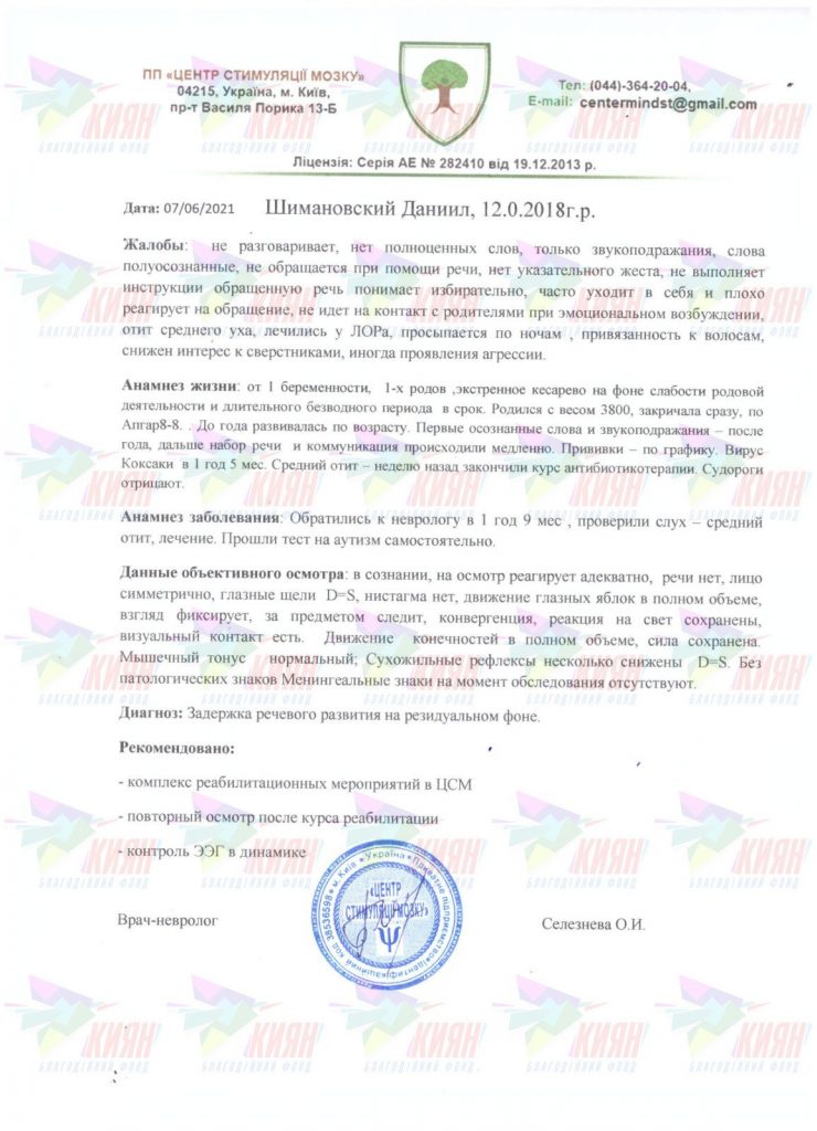Коли малюкові не було й двох років, йому діагностували затримку психо-мовленнєвого розвитку з ймовірністю розладу аутичного спектра. Уже 5 місяців батьки активно займаються з сином у різних центрах, і лікування вже дало свої результати. Дитина буквально змінилася на очах: він став спокійнішим, почав розуміти мовлення, реагує на ім’я. найголовніше у таких лікувальних курсах – це систематичність. Якщо їх перервати – з’явиться серйозний регрес, і все потрібно буде починати з початку.
