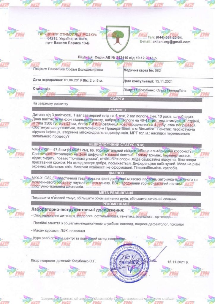 Діагноз: синдром ПНРВ, синдром рухових порушень, внаслідок гіпоксично-ішемічного ураження ЦНС