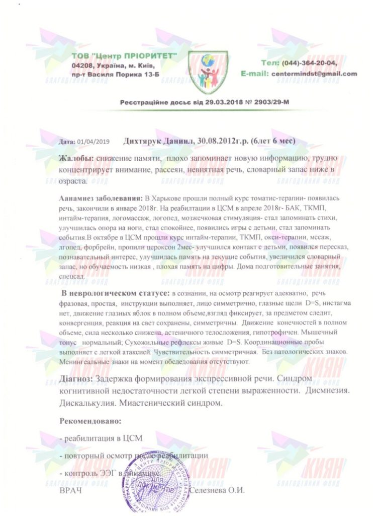 Диагноз:наслідки нейроінфекції, затримка психомоторного розвитку, міатонічний синдром зі стійкими вираженими порушеннями