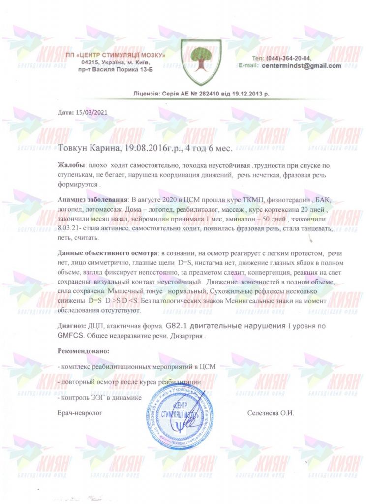 Якщо лікування продовжити, результати Каріни будуть ще масштабнішими. Якщо… Але є одне «але» – фінансовий стан родини настільки виснажений, що самостійно з витратами на лікування їй не впоратися. Без вас шанси Каріни на здорове дитинство суттєво зменшуються. А вона так хоче бути такою, як її однолітки, хоче бігати, гратися в пісочниці і заплітати коси ляльці із своїми подружками.
