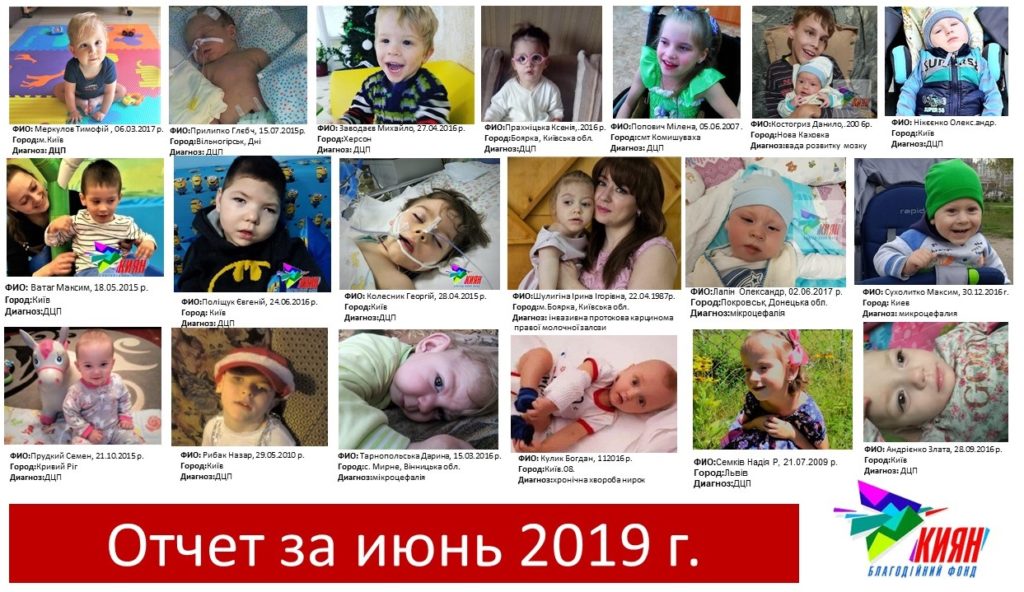 На фото все подопечные БФ КИЯН, кому помогли в ИЮНЕ 2019 г. на сумму 352 776,65грн.