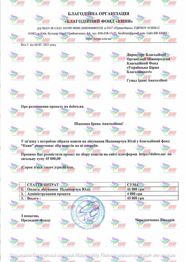 Ім’я: Паламарчук Юлія Сергіївна, 30.05.2017р.