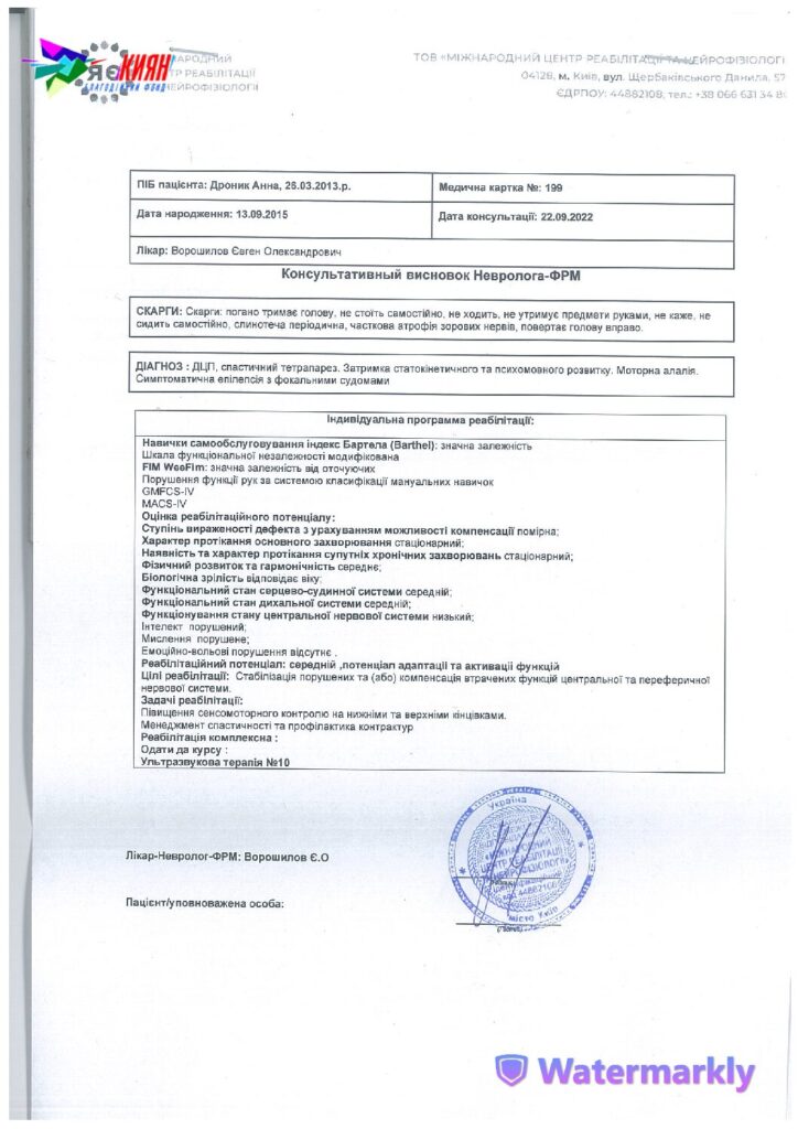 Ця мужня дівчинка пережила так багато всього: напади епілепсії, біль, неможливість робити те, що можуть інші діти, складну нейрохірургічну операцію уздовж хребта, що прибрала спастику в тілі. І досі вона продовжує боротися і не припиняє лікування та реабілітації – все заради щасливого дитинства без болю.