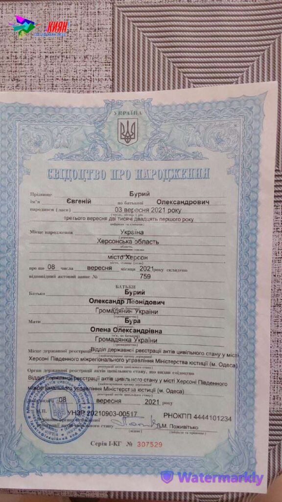 Повне ім’я: Бурий Євгеній Олександрович, 03.09.2021 р.