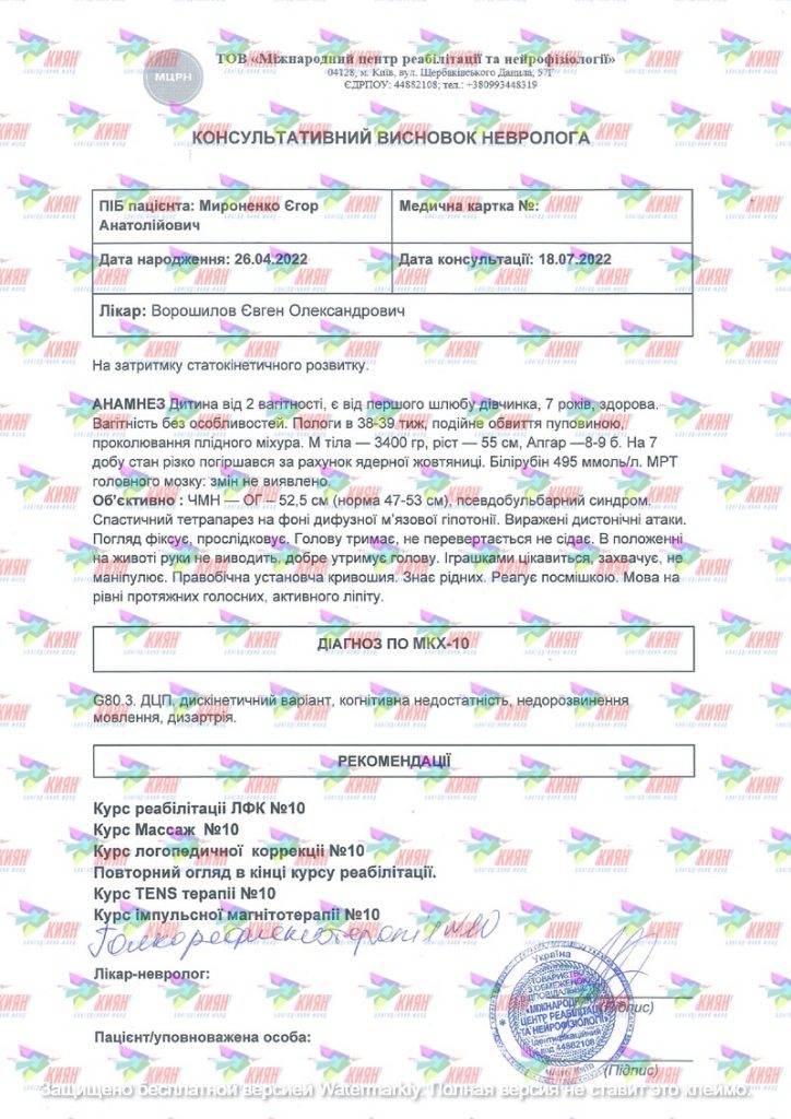Відгуки батьків та інформацію про поередні етапи лікування можно подивитися тут