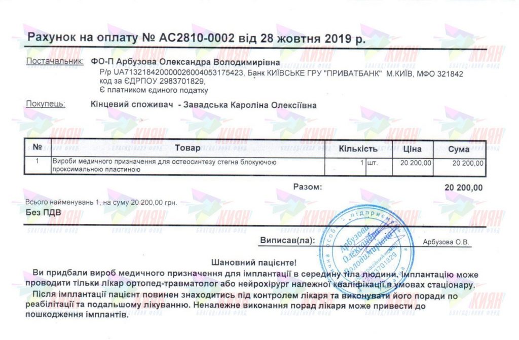 ПІБ: Завадська Кароліна Олексіївна, 16 вересня 2014 року
