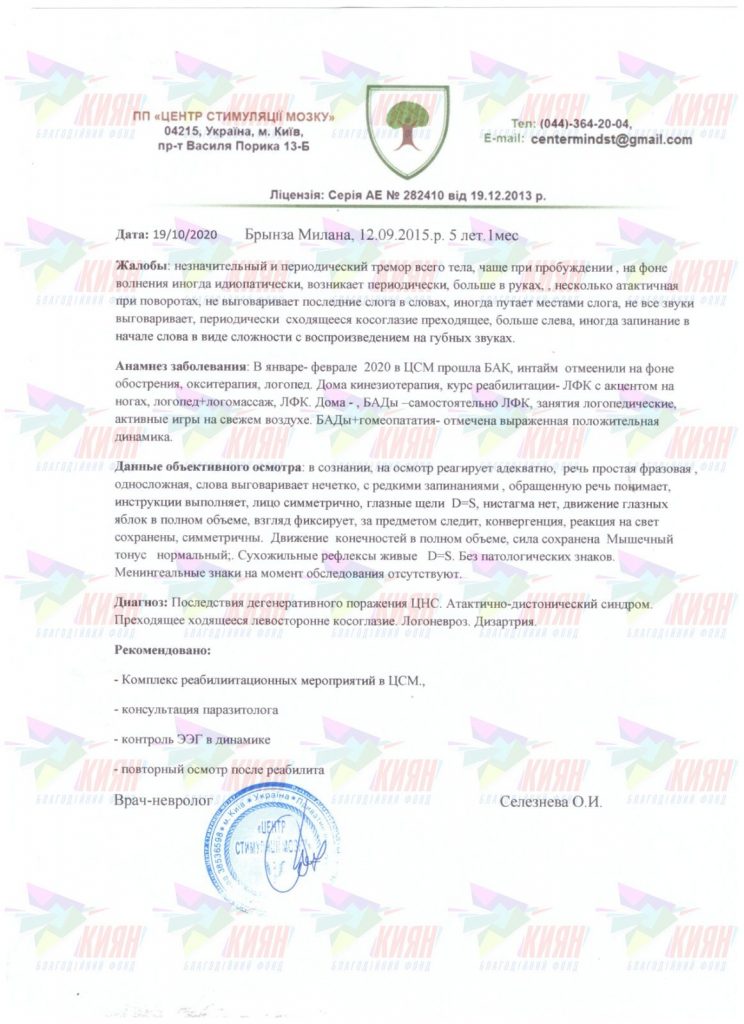 Діагноз: дегенеративне захворювання ЦНС, гіперкінетичний синдром